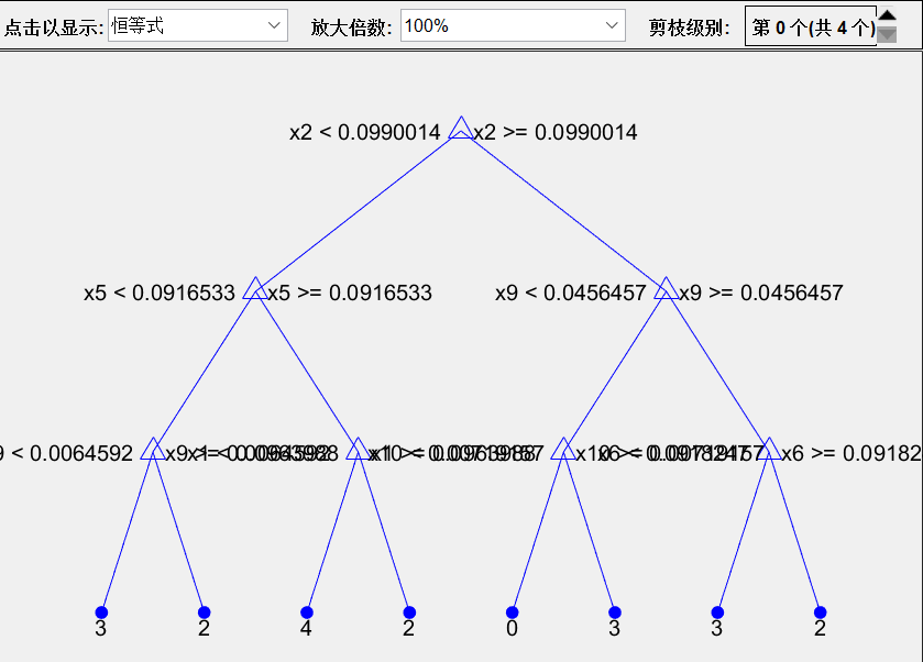 tc = fitctree(p_train',T_train','MaxNumSplits',11);显示决策树结构